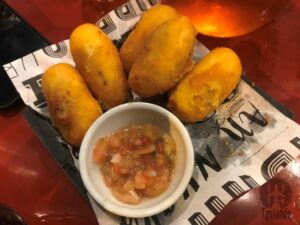 Além das deliciosas cervejas, pedimos fritas (batata frita ondulada e supercrocante) R$ 15, bruschetta toscana (bruschetta de linguiça toscana com vinagrete), R$ 18, croqueta de carne seca com requeijão (6 croquetas com massa de mandioca, recheadas com carne seca e requeijão catupiry, acompanha vinagrete levemente picante), R$ 19,50, bolinho de queijo coalho (6 bolinhos de massa de mandioca recheados com queijo coalho e geleia de abacaxi com pimenta, acompanha geleia de abacaxi com pimenta), R$ 19,50.
