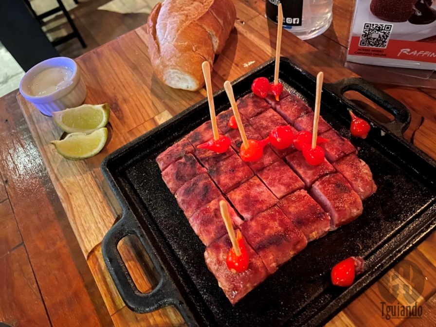 O pedido das porções é feito ali e entregues na mesa. Pedimos, claro, general linguiça de panceta limão e mel (linguiça exclusiva, feita 100% com barriga suína, com temperos exclusivos e a finalização com um leve toque cítrico que é equilibrado com o dulçor do limão), R$ 46.