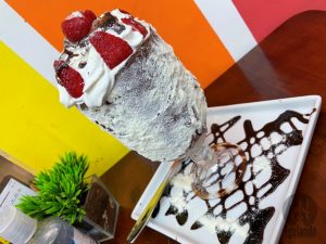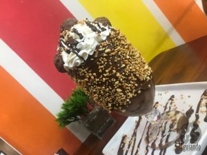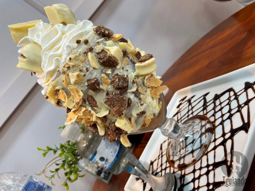 A dúvida foi grande, mas por fim, dividimos uma taça de sorvete premium (Rafaello), R$ 28.