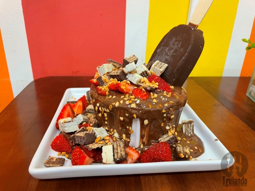 Dessa vez voltamos para provar o grand gateau (petit gateau coberto por chocotella, morangos picados, bis branco e preto, amendoim triturado e um picolé megga premium a escolher), R$ 30.