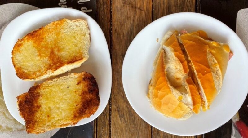 Para comer, pão com manteiga na chapa, R$ 4, e misto (presunto e queijo prato), R$ 10,80.