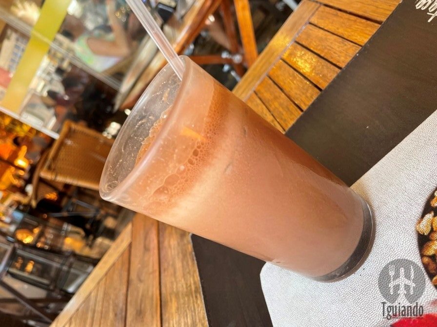 Pedimos cappuccino 140ml, R$ 9,90, chocolate gelado 300ml, R$ 9,80.