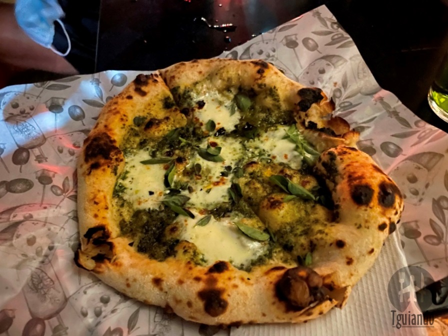 Para esse dia especial, uma pizza especial: Genovese (pesto de manjericão fresco, queijo stracchino, queijo grana padano, manjericão fresco), R$ 42, além da pizza verde, pedimos também prosciutto parma (sugo italiano, mozzarella fresca, queijo grana padano e raspas de limão siciliano), R$ 67.