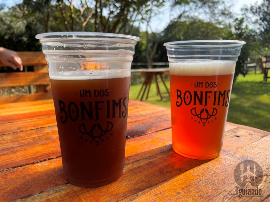 Fomos conhecer uma cervejaria inaugurada recentemente na cidade vizinha e com área externa no meio da natureza, com muito verde.