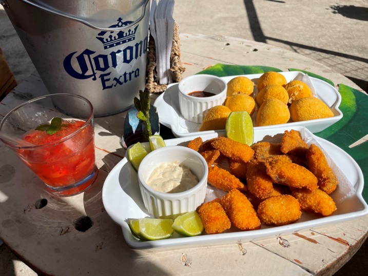 Pedimos filé de tilápia empanado, R$ 49, e coxinha de costela (8 unidades), R$ 28.