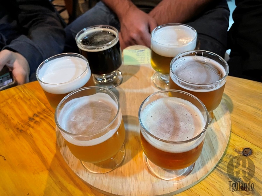 Pedimos alguns chopes, dentre eles american IPA (IBU 50), e uma tábua de degustação.