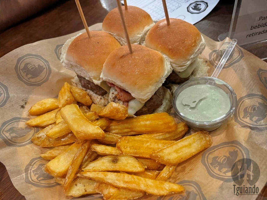 Demorou mais do que o previsto, mas voltamos numa sexta-feira no final do dia. Pedimos cerveja e pastéis e mini hamburguer.