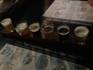 Ao chegar, somos servidos e apresentados pelos chopes que a casa oferece. São copos com pequenas quantidades da Pilsen, Dunkel, Stout, Pale Ale e Weiss.