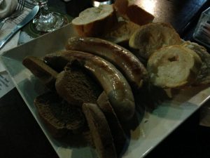 Na sequência, por R$ 26, pedimos uma kalbsbratwurst (salsichão de vitela grelhado na chapa, com cesta de pães, mostarda amarela e escura), würste 4×1 (salsichas cervela, shüblig, Kalbsbratwurst e Frankfürter cortadas em rodelas e servidas quentes), R$ 29, e, por fim, auf deutsch gibt’s nicht (pastéizinhos de carne, queijo e calabresa), R$ 21.