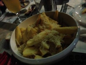 Pra começar pedimos uma pommes frites mit parmesankãse (batata frita especial com parmesão ralado), por R$ 15.