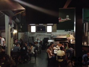 Estivemos em um bar em Itatiba, onde as cervejas são artesanais e a cervejaria fica no próprio estabelecimento, atrás do balcão.