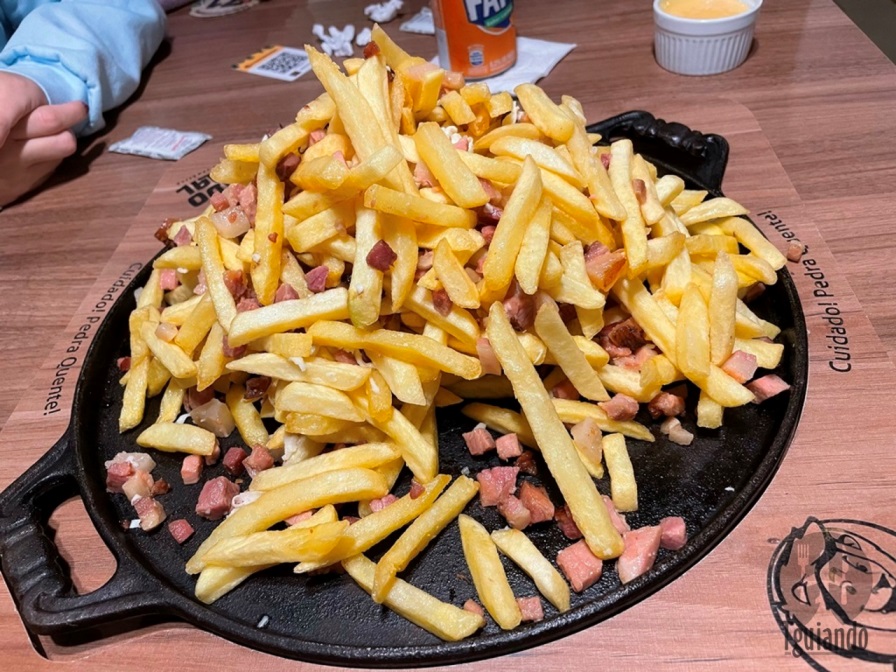 Tem outras porções e chapas que chamaram a atenção e ficamos com vontade de pedir, mas pela quantidade de batata, vai ficar para uma próxima vez.