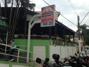 Em uma outra vez em que fomos à Serra Negra, almoçamos no Panela no Fogo. O lugar é grande e estava cheio, mesmo assim o atendimento foi bom. Sistema self-service com diversas opções de pratos quentes e frios, sendo R$ 30 por pessoa, ou à la carte com cardápio bem variado.