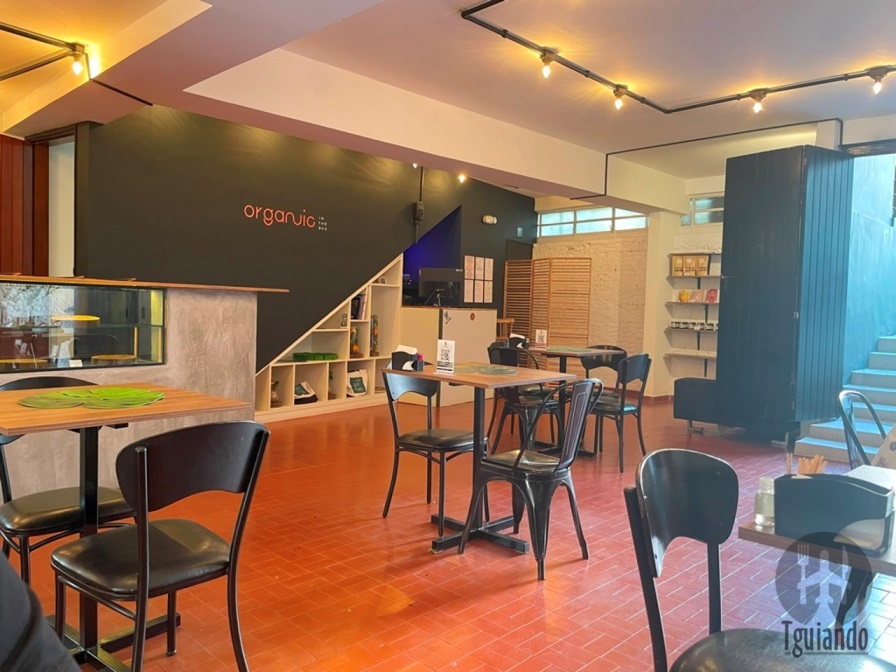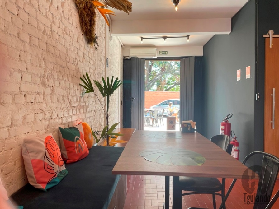 Ficamos ali embaixo mesmo, estava bem fresco e gostoso, nos distraindo com a decoração, almofadas, sofás e o próprio cardápio.