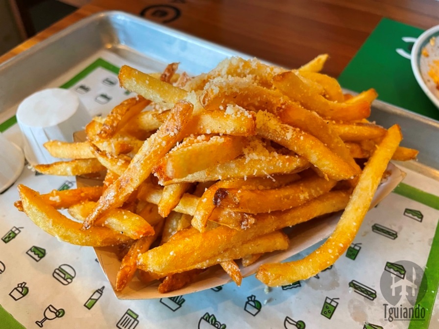 Pedimos truffle fries (nossa batatinha, que nunca foi congelada, com queijo parmesão e azeite trufado), R$ 24.