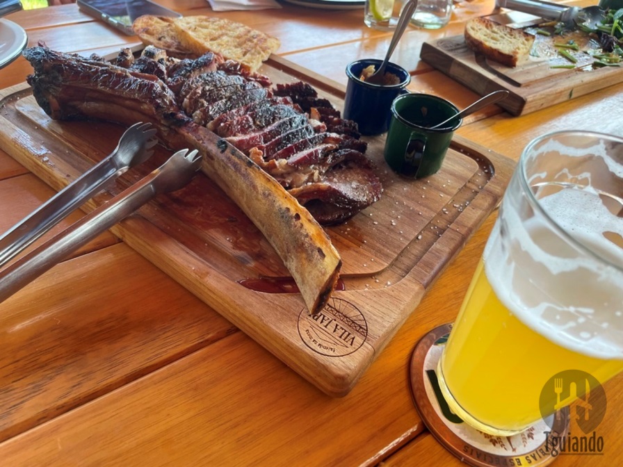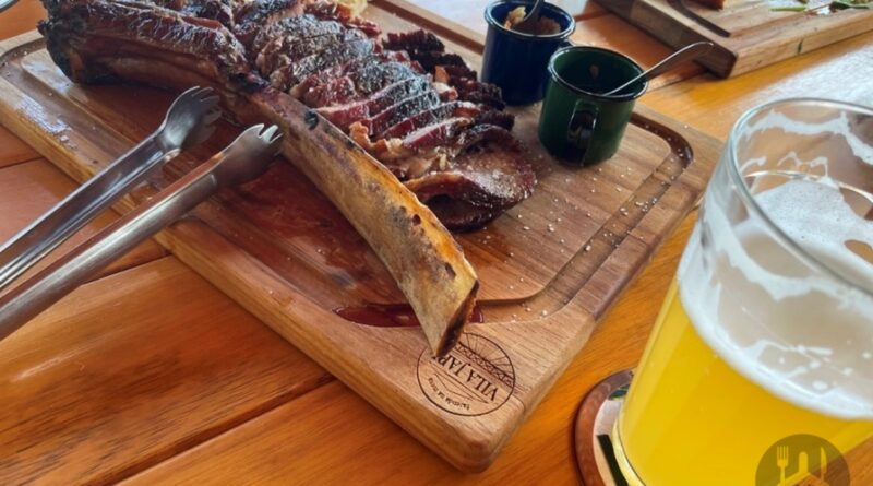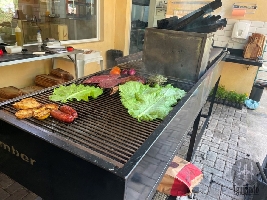 Pedimos: fraldinha (300g com rúcula e parmesão), R$ 80, e tomahawk (1kg), R$ 180. Ambas acompanham farofa, pão da casa e chimichurri, são grelhados na hora em um misto de carvão e lenha que confere um sabor único levemente defumado.