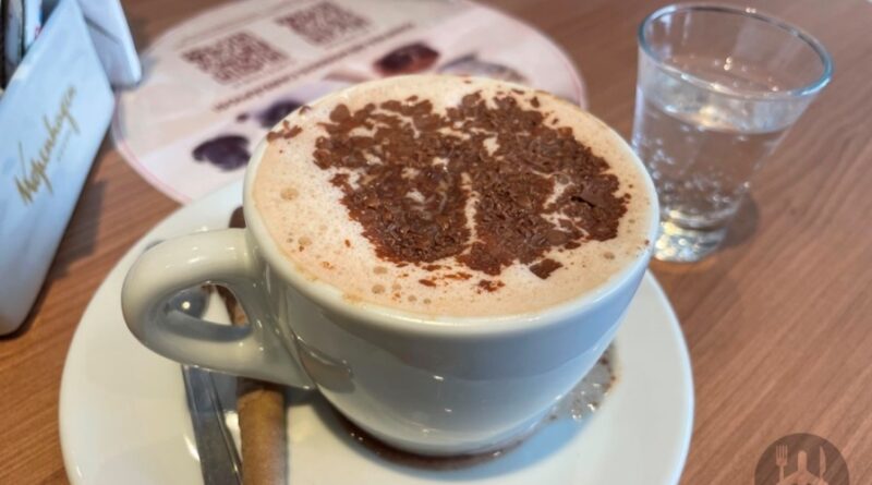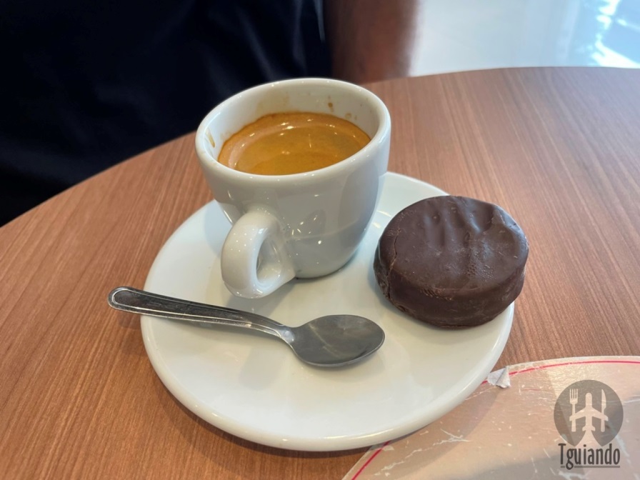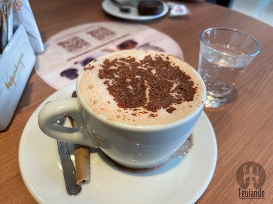 Como estávamos de passagem rápida, ficamos só nas bebidas: expresso (café expresso feito com grão arábica), R$ 16,15, e chococcino (150ml de leite e raspas de chocolate ao leite), R$ 19,90.