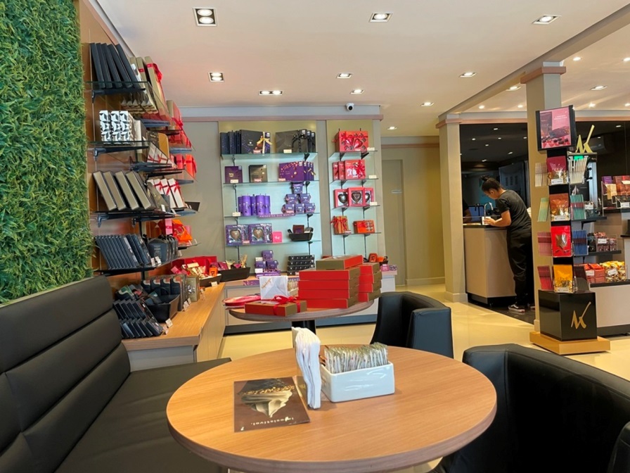 Além da loja com seus chocolates já bem conhecida, um lugar bem clean, gostoso para um café.