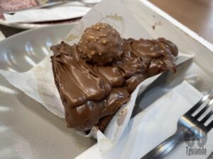 Assim foi com brigadeiro meio amargo, R$ 2,50, cremoso de uva (sim, sempre peço), coxinha de brigadeiro com morango, R$ 10, e bombom de nozes, R$ 5,50.