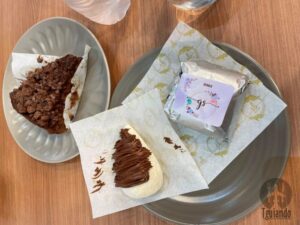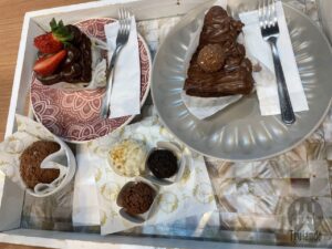 Claro que provamos a famosa lasanha de brownie, R$ 9, e pizza brownie ferrero, R$ 14, cremoso de uva e docinhos.