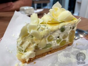 Passando aqui só para pedir o cremoso e, como não tinha, pedimos a fatia de torta nuvens de uva (base de biscoito crocante, uma camada fina de brigadeiro de quatro leites, mousse de leite ninho com uvinhas sem caroço, coberta com lascas de chocolate marfim), R$ 19. É muito gostosa e leve!!