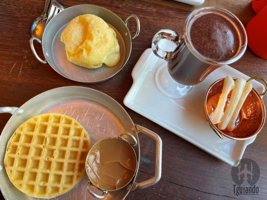 Tentamos nos controlar e pedimos as bebidas: cafezin mineiro empório (sucesso da casa, com aroma intenso de chocolate e baunilha, trazendo em sua essência um sabor adocicado, lembrando laranja e mel, com acidez cítrica destacada, corpo médio, equilibrado e longa finalização), R$ 8,90, chocolate quente cremoso do barão (com avelã), R$ 14,90, e waffleccino (cappuccino italiano acompanhado de waffle de caramelo), R$ 16,90.