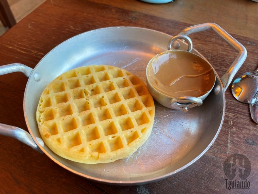 Claro que pedimos um doce e foi o waffle doce com docin di leite, R$ 13.