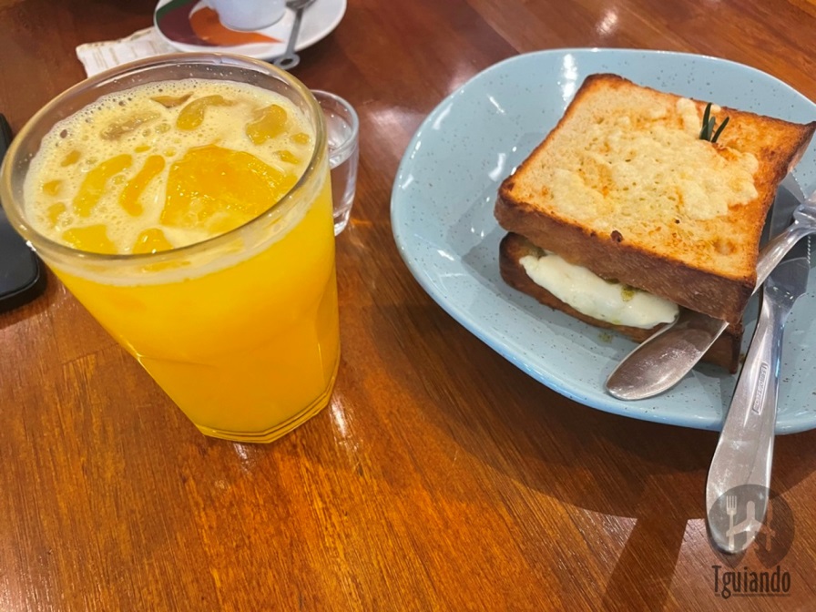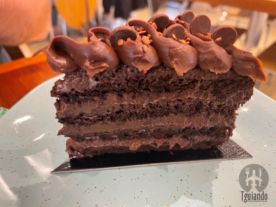 Pedimos suco natural (laranja), R$ 14, e café expresso, R$ 8, tostex marguerita (duas fatias de pão de brioche, recheados com queijo minas, tomate grape e pesto de manjericão, finalizado com parmesão), R$ 28, e bolo devil’s cake (massa úmida e areada com recheio de ganache de chocolate), R$ 20.