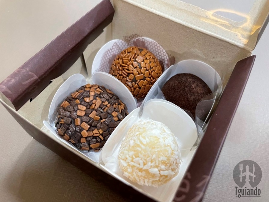 Claro que não poderíamos deixar de pedir a caixa de brigadeiros gourmet, R$ 17, os sabores escolhidos foram: meio amargo, chocolate belga, laka com óreo e rafaello.