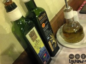 Ao trazer o pão, trouxe também azeite libanês, português e grego, além do azeite temperado com alho que estava na mesa.