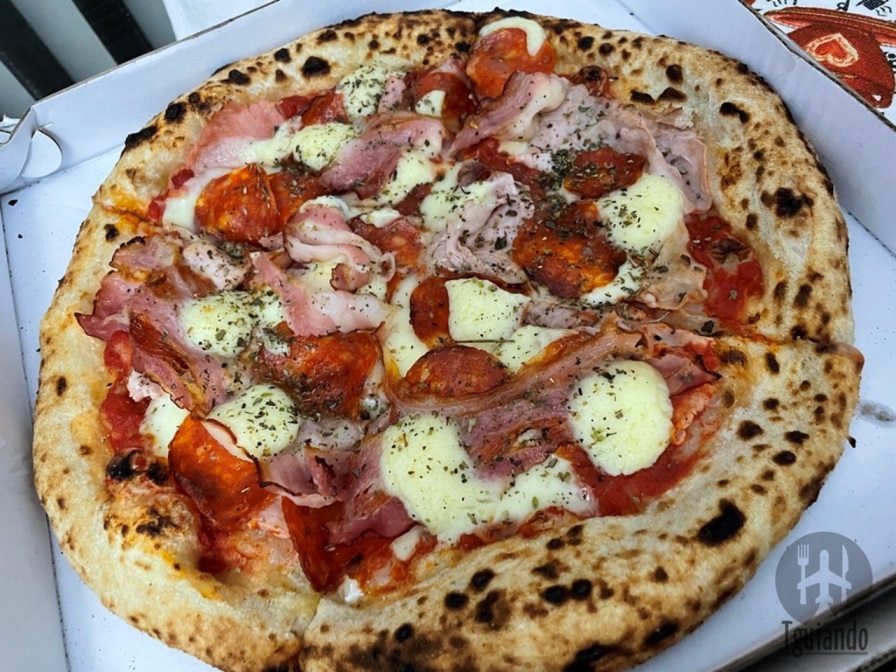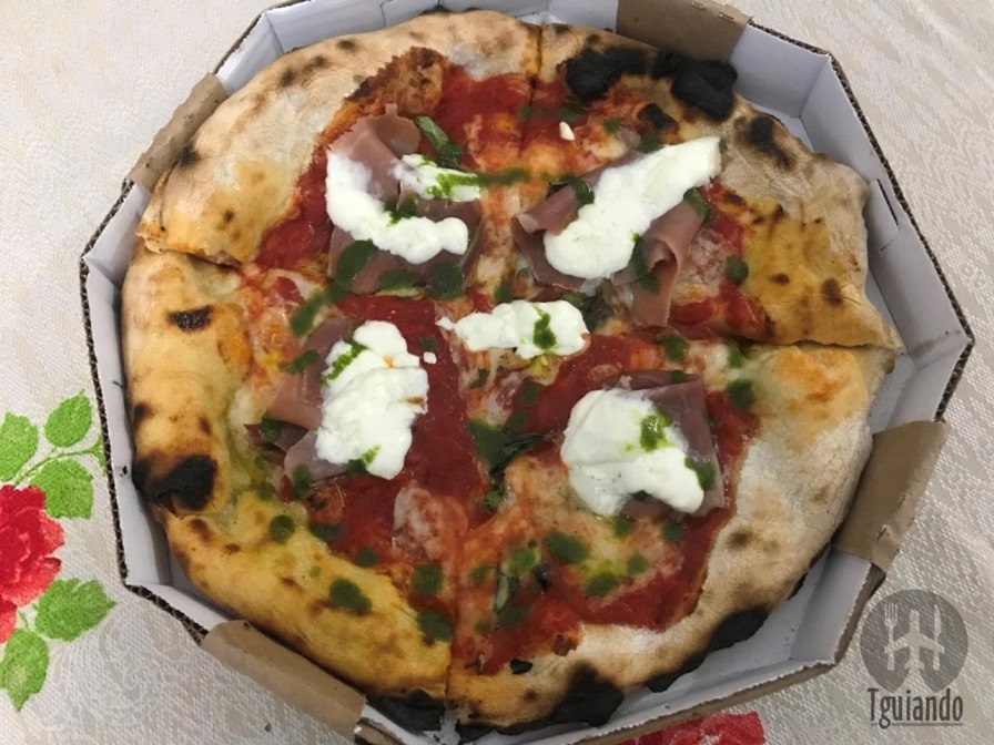 Em meados de março/ 2020, sem poder sair de casa por conta do COVID-19, com vontade de comer uma de nossas pizzas preferidas, mas de um jeito diferente, fizemos o pedido pelo iFood, e, com a intenção de ainda comer quente, fomos retirar, por ser perto de casa. Depois de 40 minutos estávamos lá na porta. Já comemos várias vezes e vários sabores lá no local, agora era o momento de saber se comer em casa é igual. Nosso pedido foi: pizza napoletana 25cm parma e burrata (molho de tomate pelado italiano (nápoles), mussarela de búfala, após pronta recebe fatias de presunto parma, burrata e pesto de manjericão), R$ 37. O sabor é aquele que já conhecemos (super gostoso). Junto da pizza, um mini azeite.