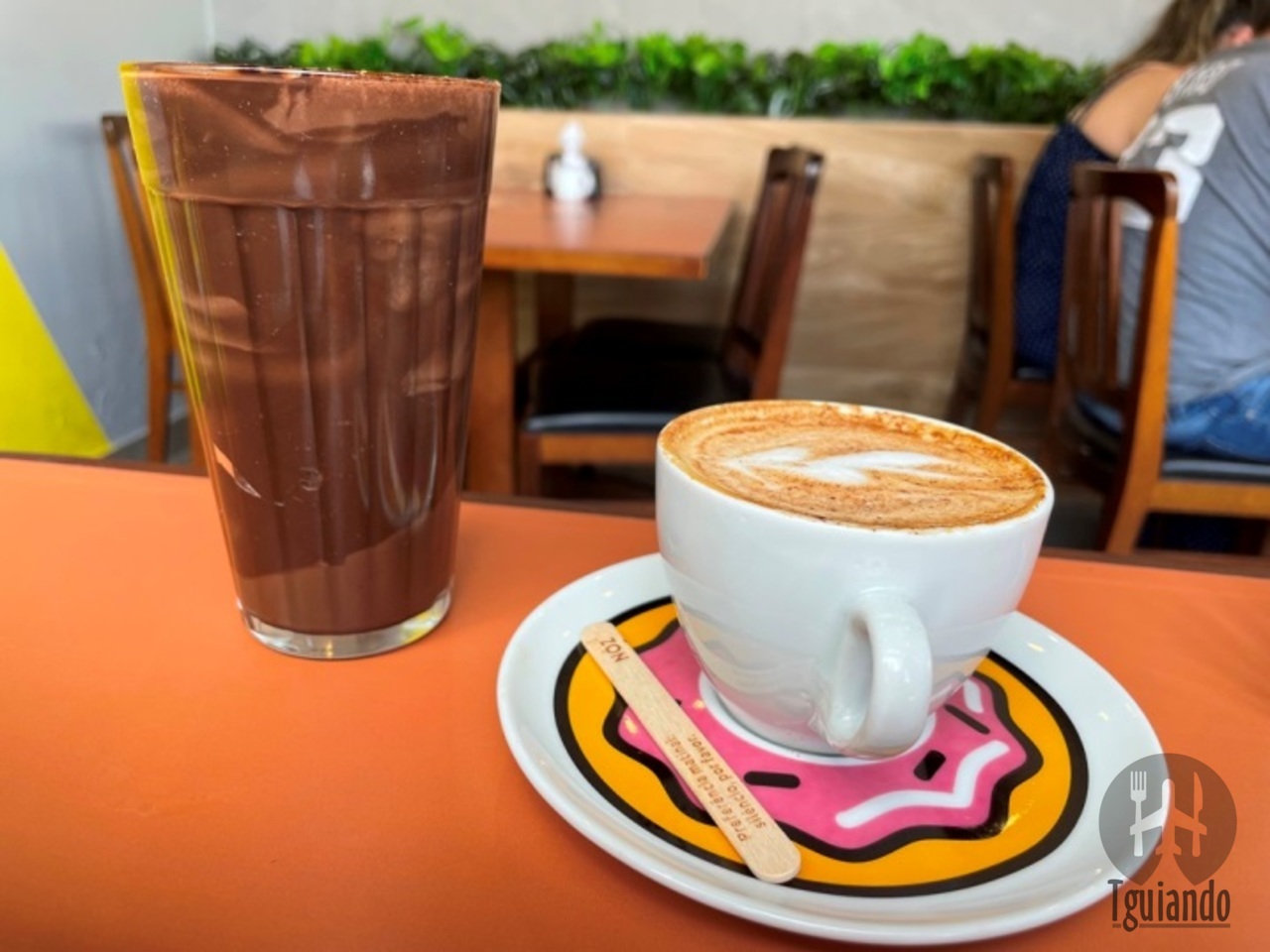 Voltamos num sábado pela manhã e dessa vez fomos de chocolate gelado (chocolate belga (meio amargo)), R$ 20,90, capuccino de verdade (cappuccino tradicional italiano, com leite bem cremoso e café expresso), R$ 12,60, pão de fermentação natural na chapa, R$ 12, e misto quente (presunto de qualidade, queijo bem derretido, tomate e chimichurri), R$ 12.